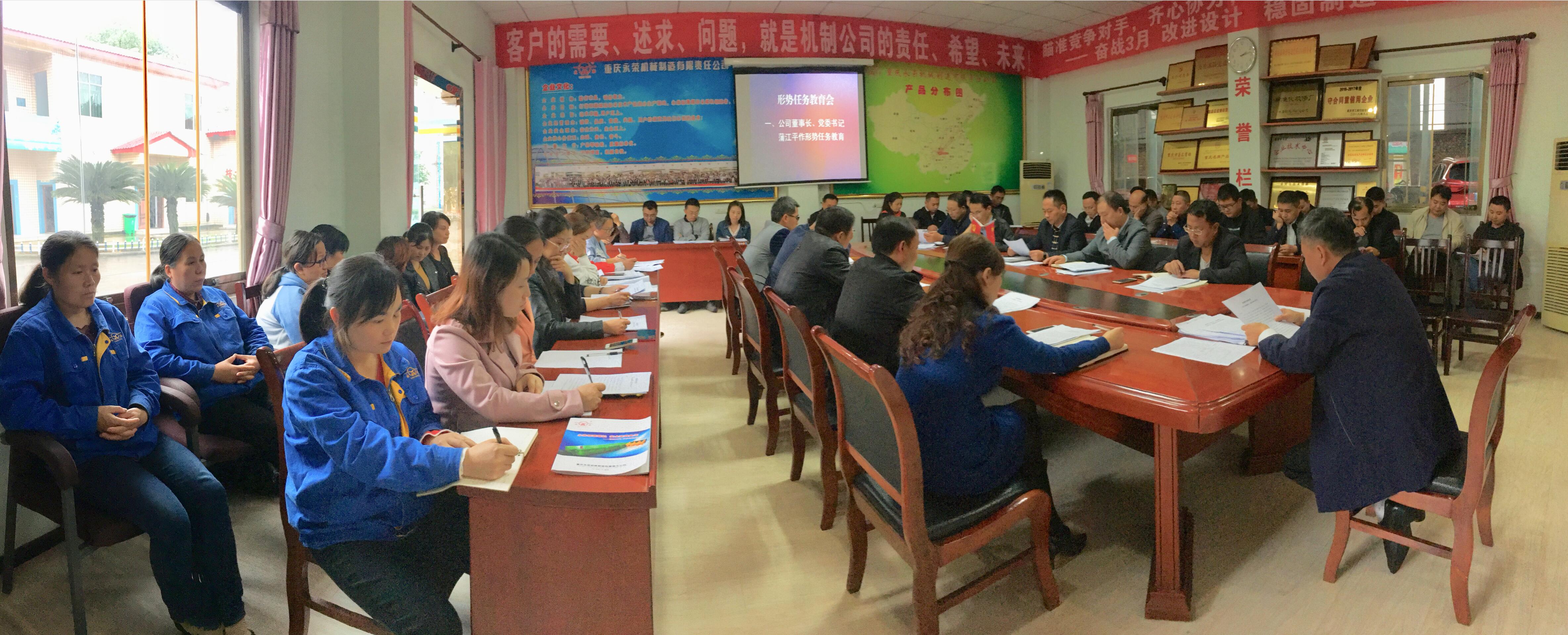 2019年10月21日,機制公司開展形勢任務教育,公司董事長蒲江平同志作形勢任務報告,監(jiān)事會主席黃清華同志作重要講話 。