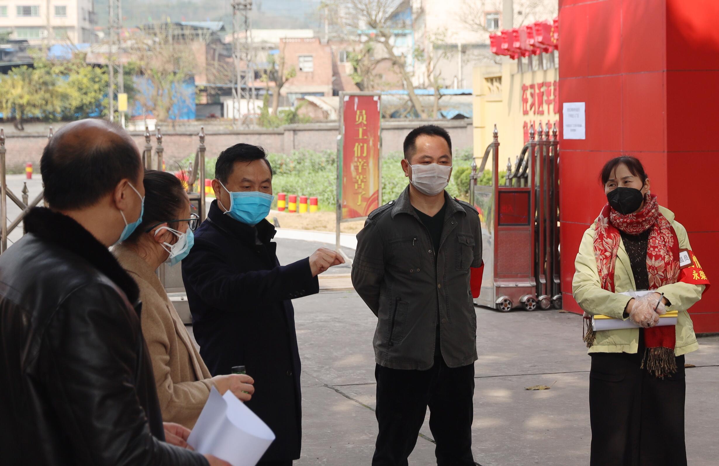 2020年2月11日下午,榮昌區(qū)經(jīng)信委唐溢會同昌元街道、廣順街道、雙河街道社區(qū)衛(wèi)生服務(wù)中心科長一行四人來到重慶永榮機制公司執(zhí)行企業(yè)復(fù)工驗場,該公司董事長、黨委書記蒲江平到廠接受驗收檢查。